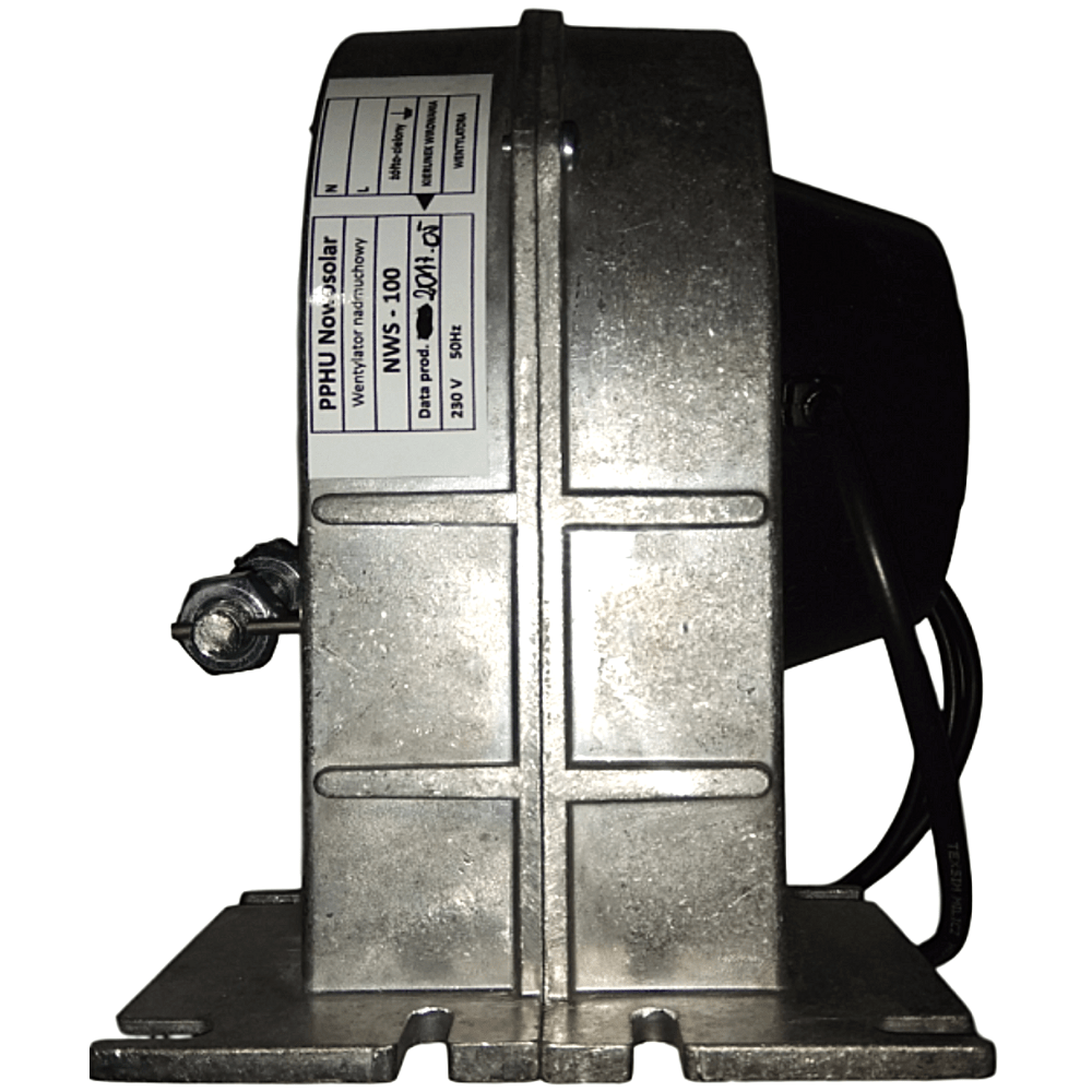 Корпус наддувного вентилятора NWS-120 складається з двох алюмінієвих частин. Електоромотор знаходиться всередині корпусу. Сталева турбіна захищена бічною уламкою в місці вильоту повітря, що оберігає користувача від випадкового дотику до нього під час роботи вентилятора, а також перешкоджає попаданню на лопаті інших механічних частин. Виліт повітря закінчено монтажним флянцем (коміром), на якому знаходяться отвори під гвинти для монтажу вентилятора на котлі. У місці подачі повітря в котел є спеціальна стулка, яка при вимкненні вентилятора закривається, що запобігає подачі повітря в камеру спалювання котла.