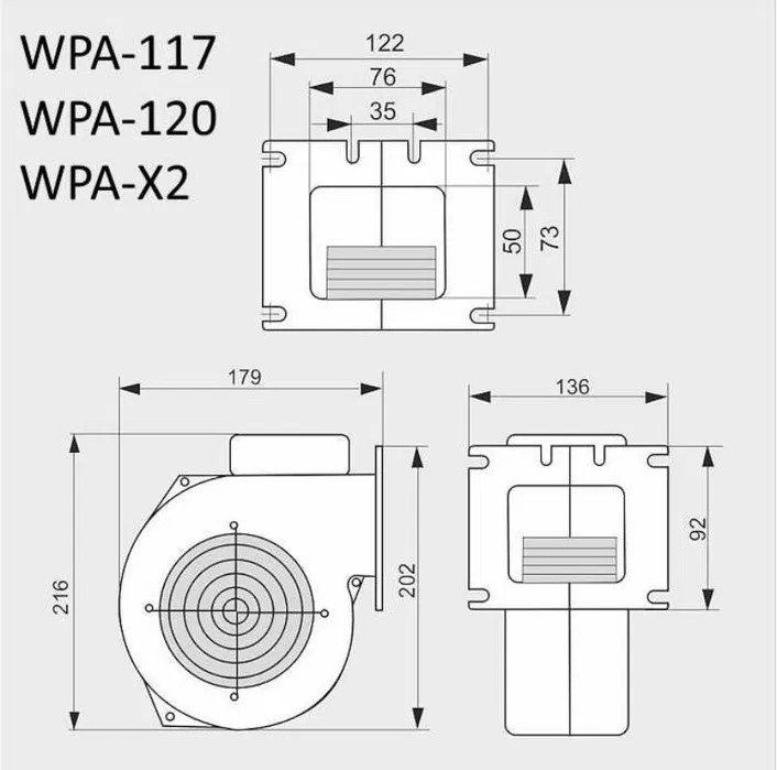 Вентилятор WPA-X2 від польського виробника MplusM — це універсальний вентилятор, призначений для створення тяги та нагнітання повітря в камеру горіння твердопаливного котла. Завдяки його використанню забезпечується більш ефективне горіння, що підвищує ККД котла та знижує витрату палива на 30%. Крильчатка вентилятора виготовлена з металу, а корпус турбіни — з алюмінію, що забезпечує довговічність і надійність пристрою. Вентилятор оснащений додатковою заслінкою, яка запобігає попаданню шкідливих газів, включаючи CO_2, у приміщення при горінні.