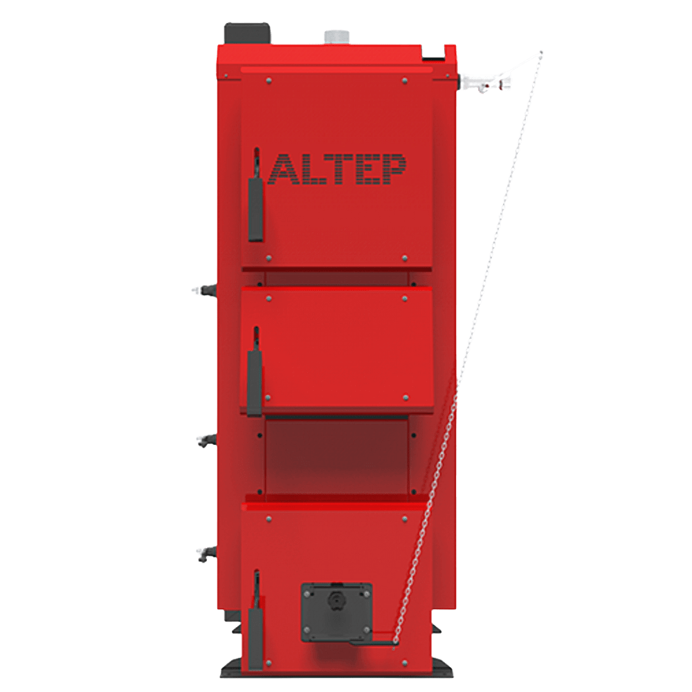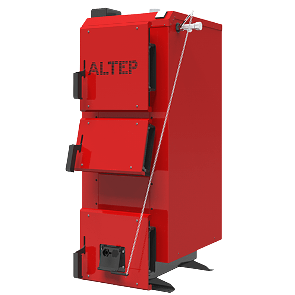 Модель котла Альтеп DUO  – котел з механічним регулюванням спалювання з поворотним регулятором.  Внутрішня частина теплообмінника котла виготовлена ​​з високоякісної сталі товщиною  6 мм , що забезпечує високий рівень якості зварювальних швів. Разового завантаження палива вистачає до 24 годин.