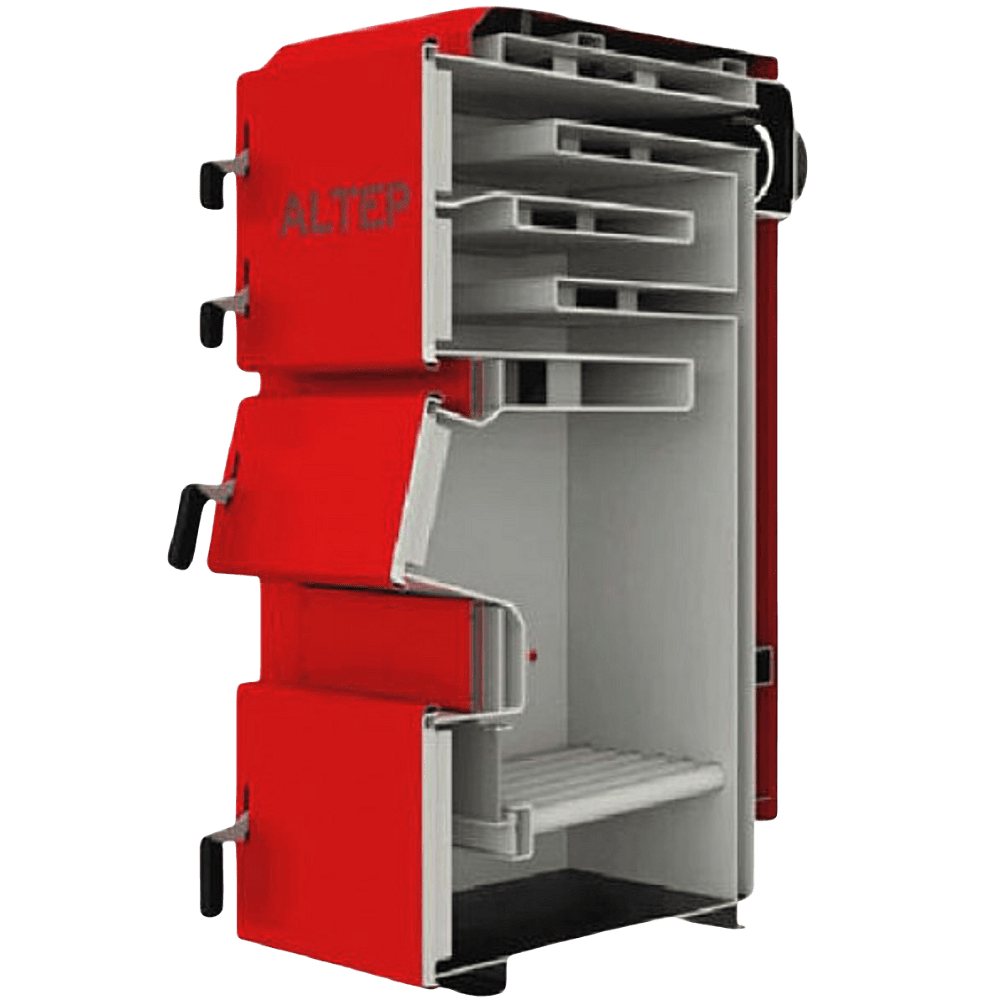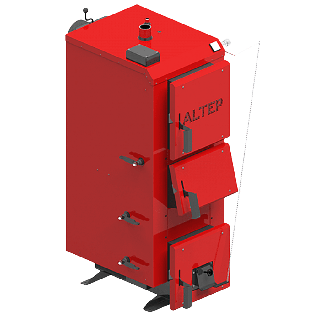 Альтеп Duo 15 кВт – твердопаливний казан тривалого горіння верхнього типу.  Вінпризначений для опалення різних приміщень до 150 кв.м (побутових, виробничих тощо), в яких обладнано систему центрального опалення. Як паливо можуть використовуватися  дрова, деревні відходи, кам’яне вугілля, тирса та торф’яні брикети, кусковий торф.