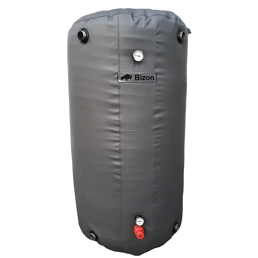 Вибір об’єму бака залежить від площі приміщення, що обігрівається, а також потужності роботи котла. Конструкція теплоакумуляторів Бізон дозволяє зберегти тепло до 6 діб. Такі показники досягаються завдяки наявності теплоізоляції, а також грамотному розподілу тепла усередині бака.